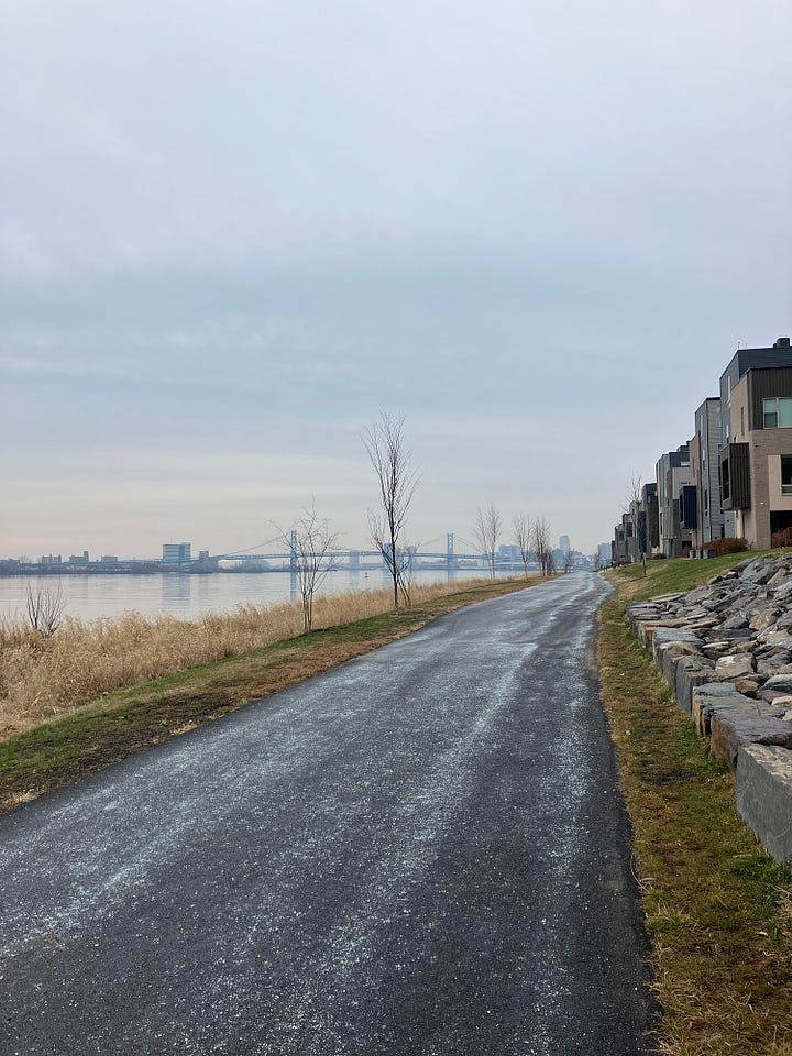 Figure out the nicest walk around your neighborhood. We live a half mile from the Delaware river, but were never able to enjoy it because it was just an abandoned industrial wasteland. Then a few years ago a developer came and built a whole new neighborhood on the site and added a public walking path that winds along the river. One of my resolutions is to go and enjoy it, watch some tugboats and ducks on my walks.