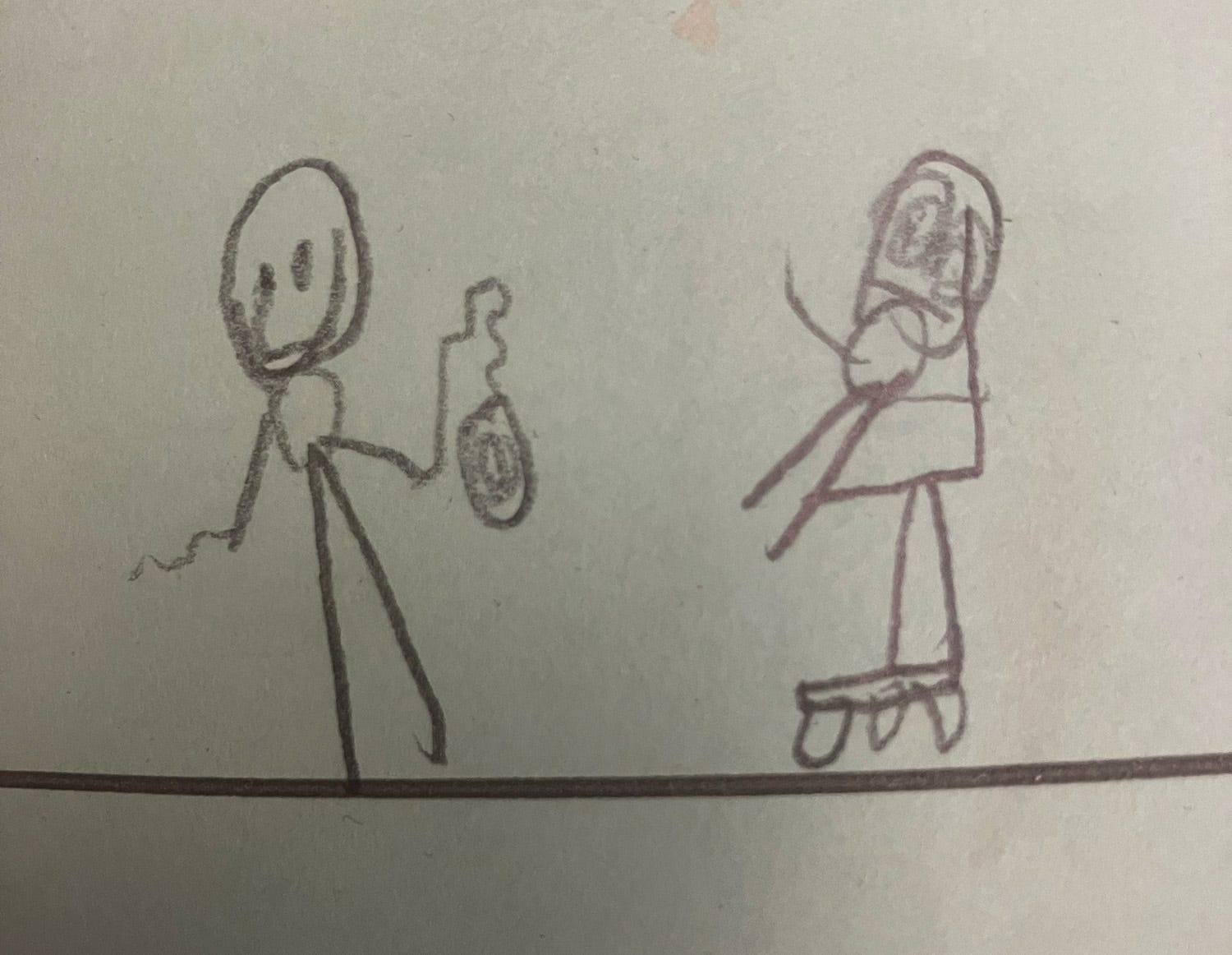 I’ve been cleaning up my studio which is just a corner of our basement. Most of the piles consist of every single piece of paper that Elliott has ever touched. I was going through them and there were so many gems in there. I kept sending Jason texts of funny things I came across. Things like this: